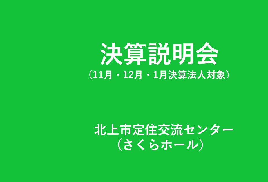 花北法人会では11月・12月・1月決算法人対象として、決算説明会を開催いたします。 日時 令和7年12月17日(水) 13:30~15:00 場所 さくらホール 是非、ご出席くださいますようご案内いたします。