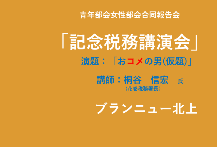 花北法人会と花北間税会共催事業事業として、講師に花巻税務署長 桐谷 信宏 氏 をお迎えしご講演を賜りますので皆様のご参加をお願い申し上げます。