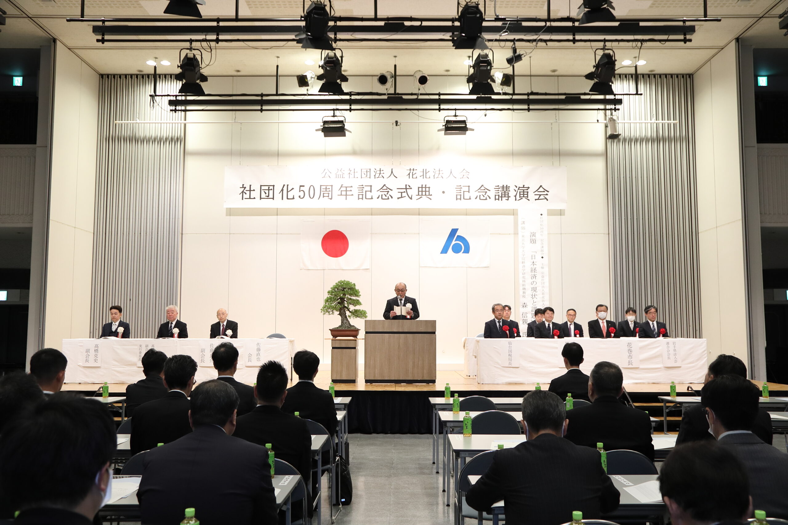 公益社団法人花北法人会(佐藤直也会長)は、令和7年11月26日(水)、花巻市のなはんプラザ(COMZホール)で社団化50周年記念式典・記念講演会を実施しました。