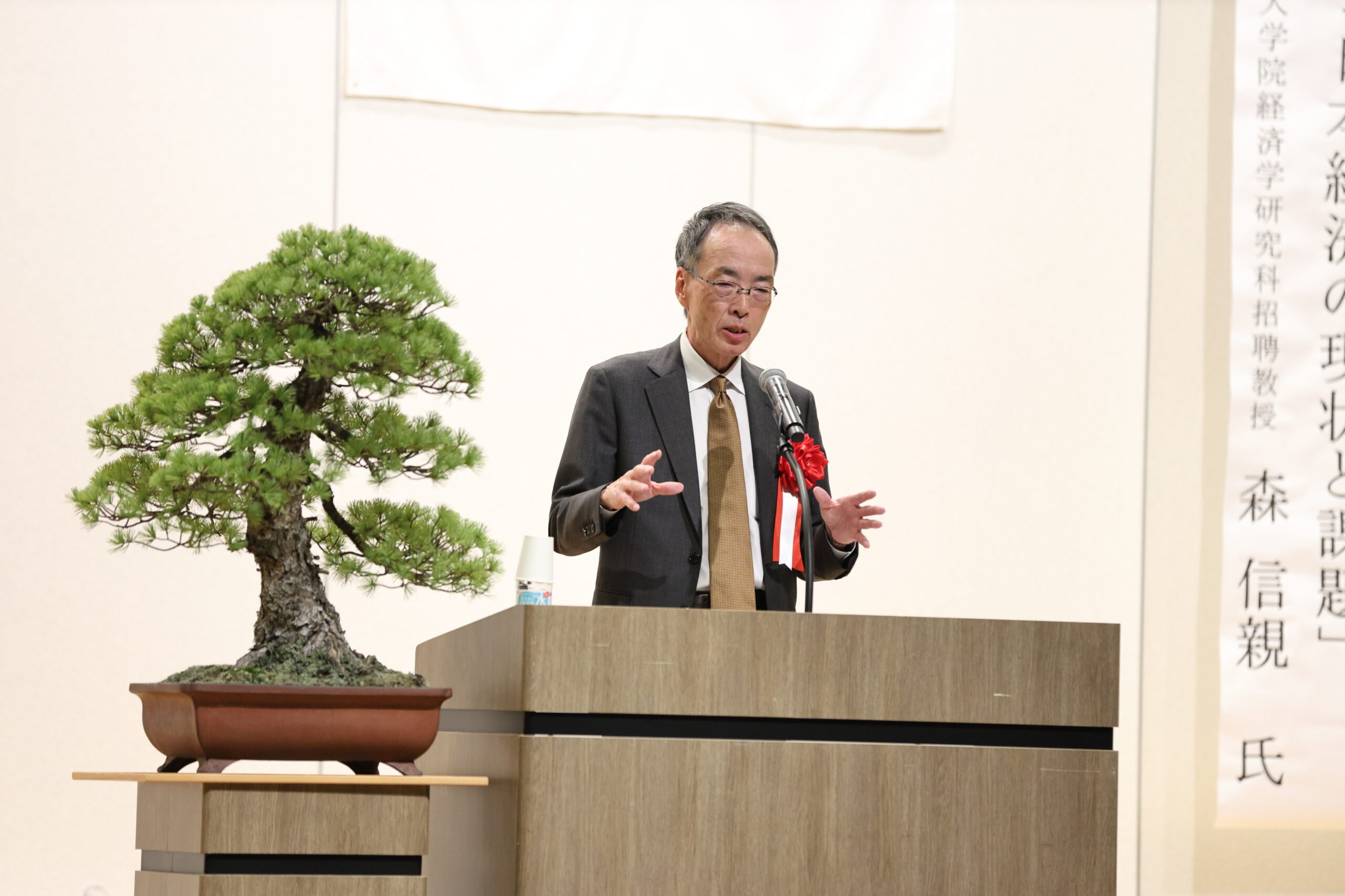 その後、記念講演会が開催され「日本経済の現状と課題」と題して、東京大学大学院経済学研究科招聘教授の森信親氏が講演。森氏は元金融庁長官で第42代花巻税務署長でもあります。