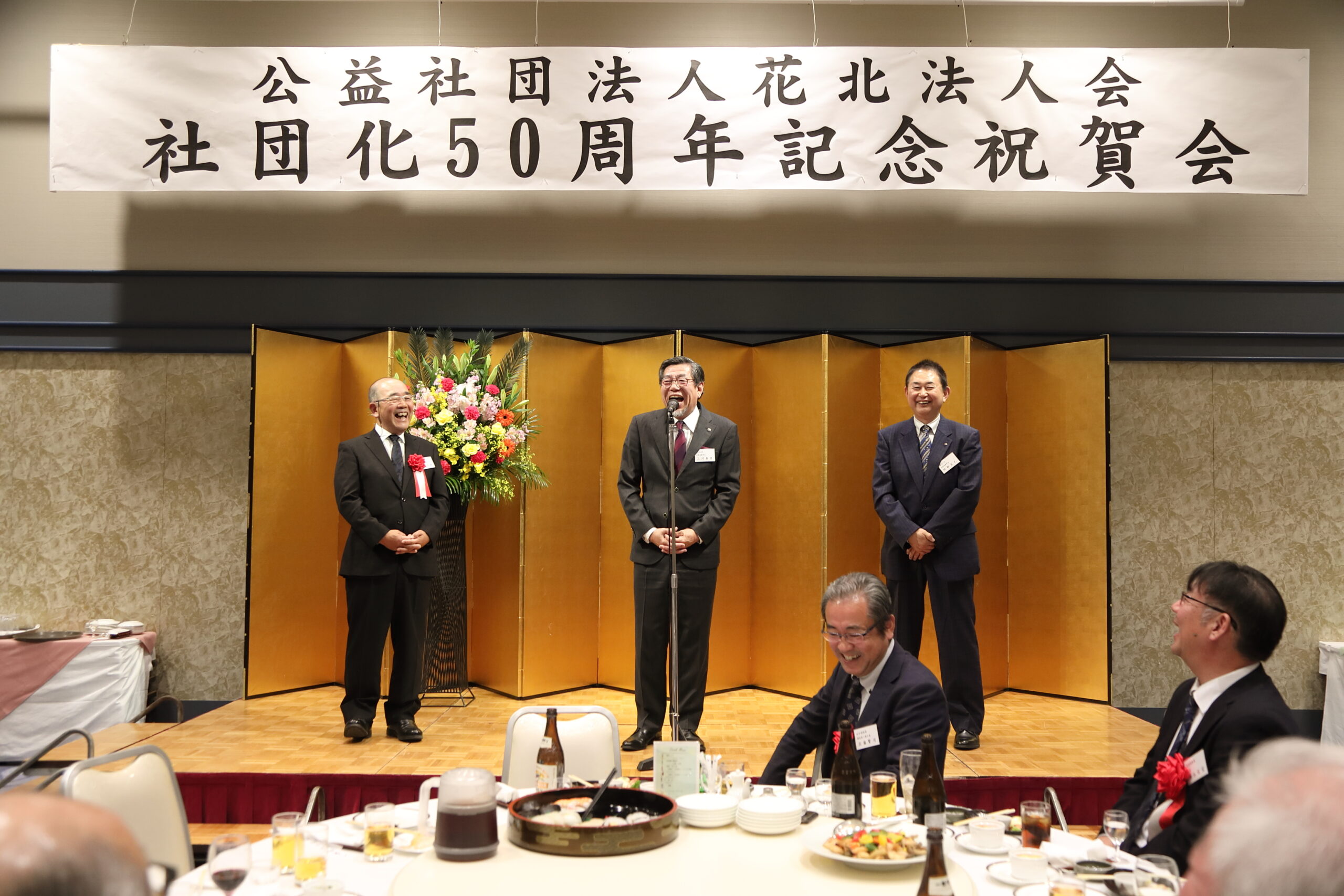 講演会後には、ホテルグランシェール花巻に場所を移し祝賀会が催され、盛大に50周年を祝いました。